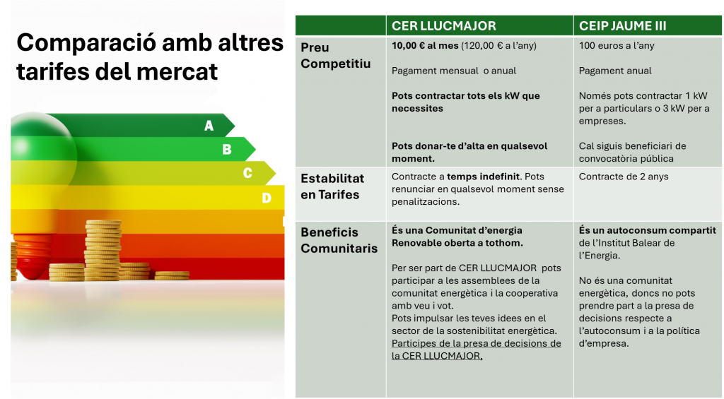 La comunitat energètica dona suport a les llars i activitats de Llucmajor oferint:
